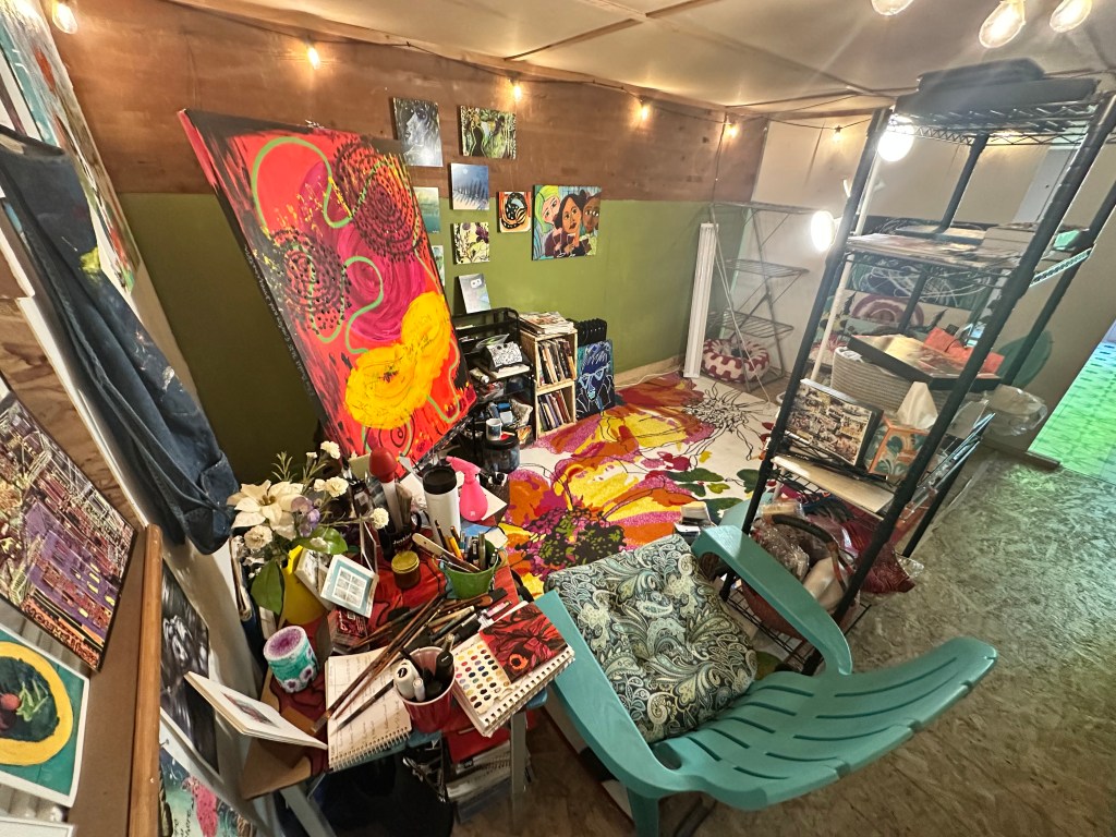 In the meantime I keep looking at real estate options from my agent here and my agent in Minneapolis, leaving both options open for my next landing space. I will need a little more space to have my in home studio, and how I hustle with my art would be very different in the two cities. Both cities are very artist centered. There’s more of a pop up and collective focus here in Portland unless you are connected to the old school curators who will represent you in a gallery. Minneapolis has a lot of grant work, and mural work, as well as live work artist community spaces. Either way, I will find a way to keep creating as it feeds my soul as one way to resist all of the roadblocks that our current Oligarchs are putting up in front of us.