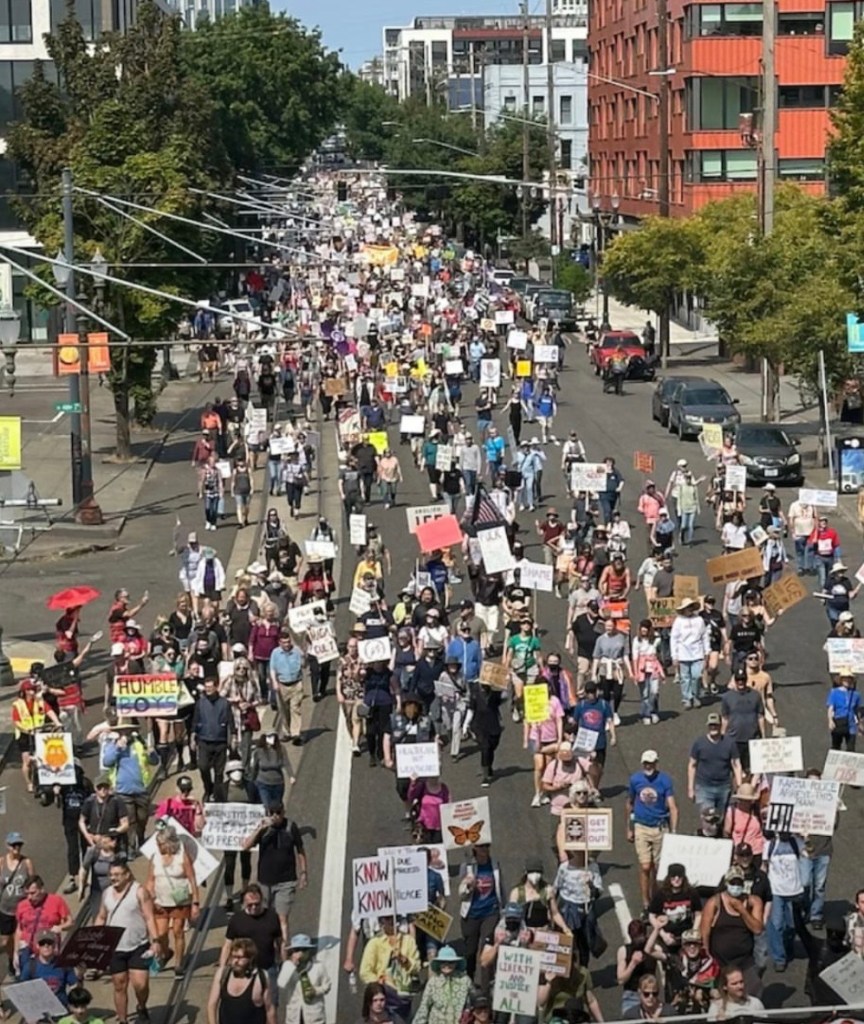 The terror we have all felt thinking about what could happen and what is happening is real. I have found the best way to make it go away is to choose to face it and knock it out with action. Ironically there was a workshop in my neighborhood on safety at protests. I thought maybe I’d learn something. Little did I know they were actually recruiting for what we now call the East PDX Indivisible Safety Team. We scout out our area of protest ahead of time, noting, places to hide people, places to relocate people to, restrooms, driveways, bustops etc. And we communicate on walkies with practiced tools of de-escalation. We help folks do simple stuff like stay on sidewalks, providing simple medical help with folks who might get injured, bringing water etc. We keep an eye out for outside agitators, ICE and other unwanted guests. We all are trained in de-escalation skills. All the time we prepare for when it might get ugly and we will need to use strategic non-violent actions to make our point or civil disobedience that could land us in jail. I’m not sure how far I will go. I do know working with these folks, and the gratitude from the protestors who are not your average folks… or maybe I should say, they are your average folks…. folks in wheelchairs, elderly, young folks with kids in strollers, etc… has brought me a greater sense of community, a strength and courage to make me want to fight back more.